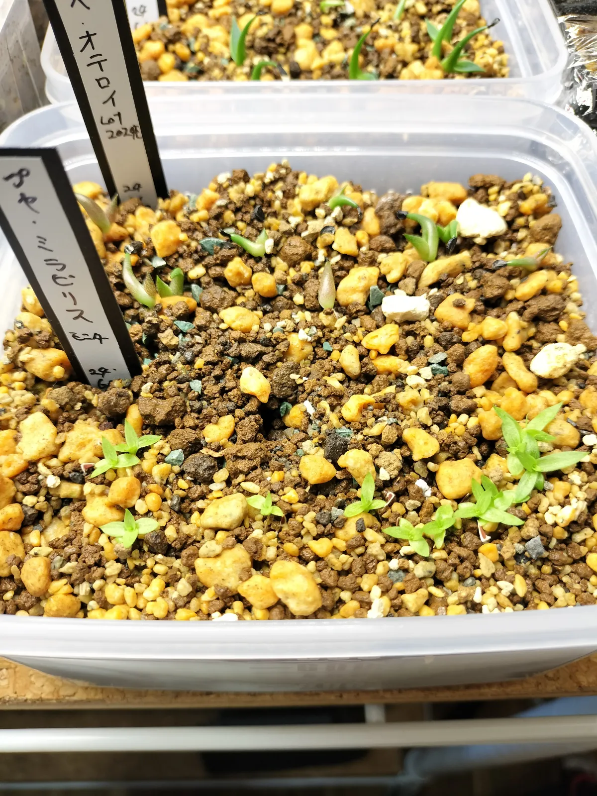 底にゼオライトを敷いて、赤玉と鹿沼土を半分ずつにマグァンプK、まくだけで根に酸素O2を微量まぜて敷き播種。
