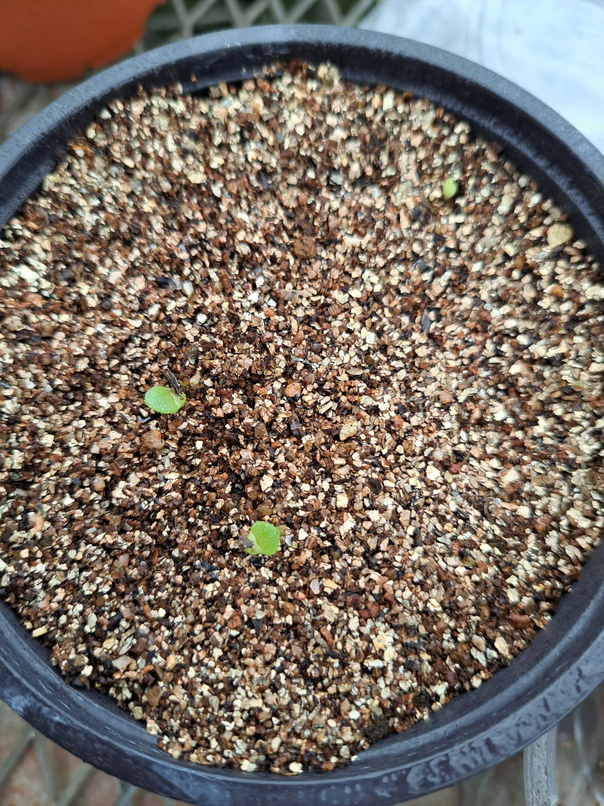 赤玉メインの用土に細目のバーミキュライトを敷き播種