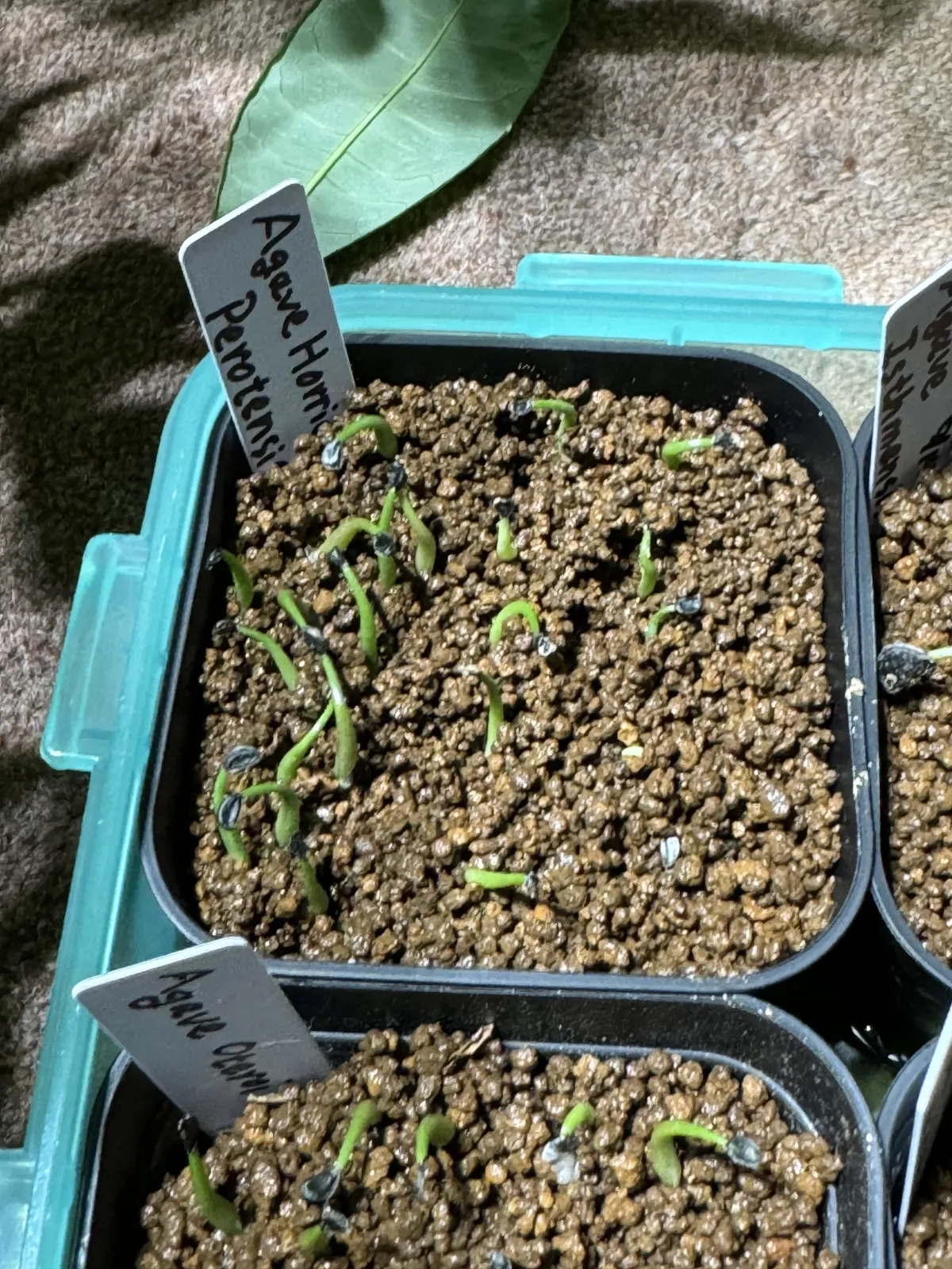 小さなプラ皿(蓋付き/50φくらいのサイズ)にパーライト1cmくらい、その上にトイレットペーパー敷いて規定濃度のメネデール水で浸した上に播種。