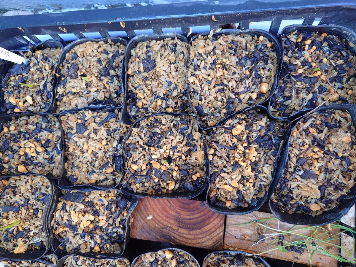 ・播種した種は、 荒く篩にかけた赤玉土と鹿沼土、または