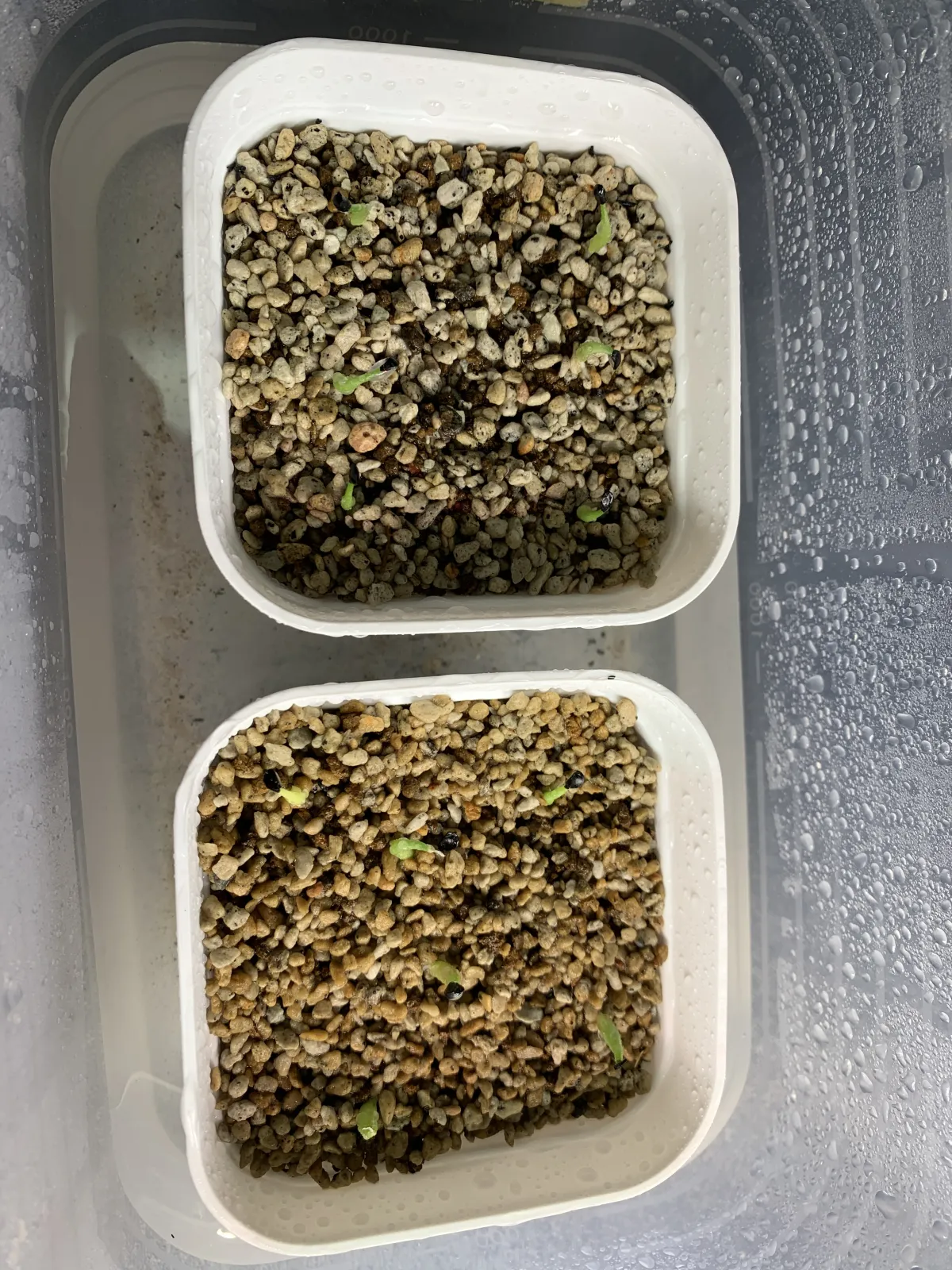 密閉容器の中で腰水、朝夕の霧吹き。
