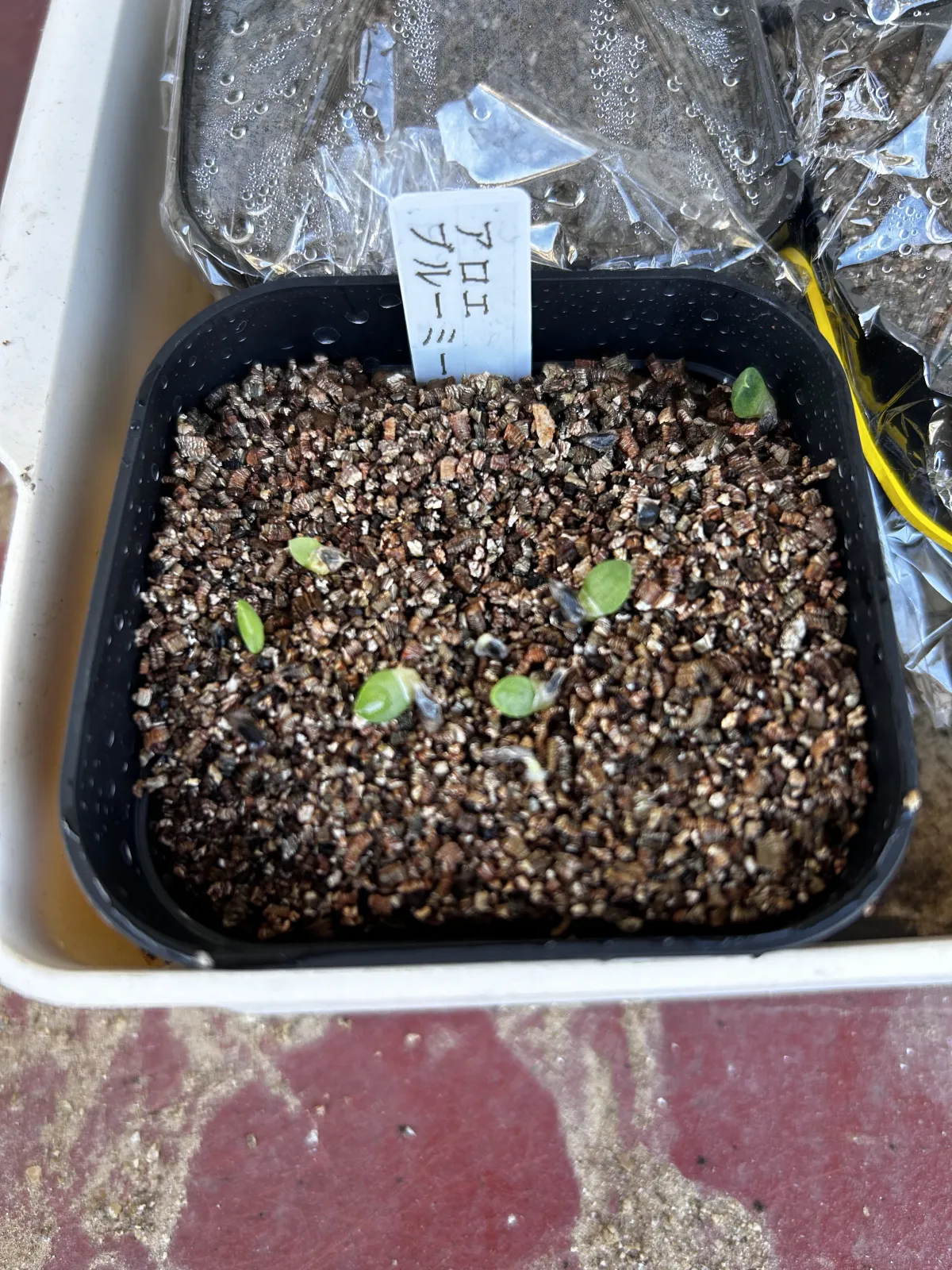 赤玉の上にバーミキュライト(熱湯消毒)