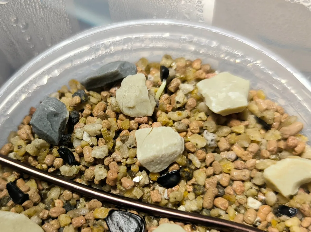 播種前に8時間水道水に浸し、多肉植物用無機用土に播種、フタができるタッパー内で腰水管理(25℃前後)。