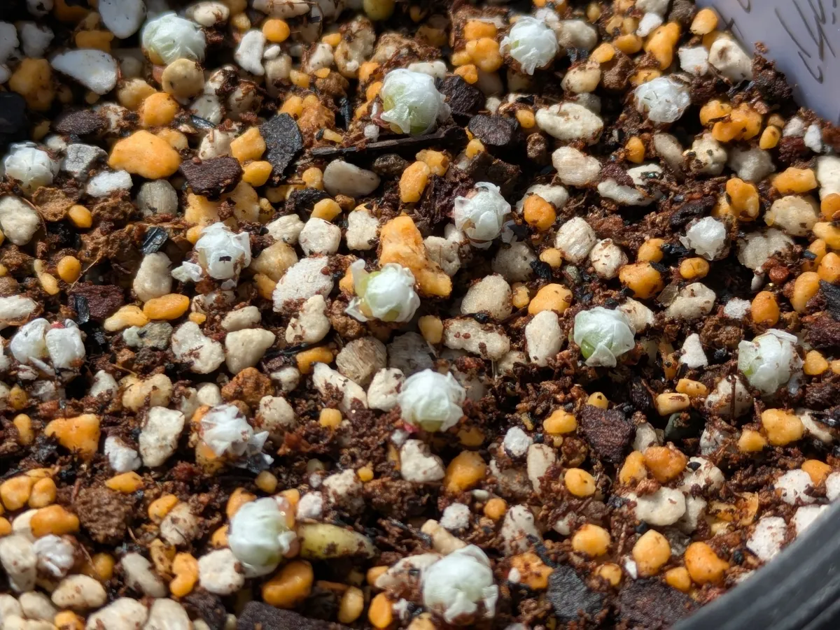 ココピート主体の種まき用土にバーミキュライトをふるいにかけた物を表土に使用。