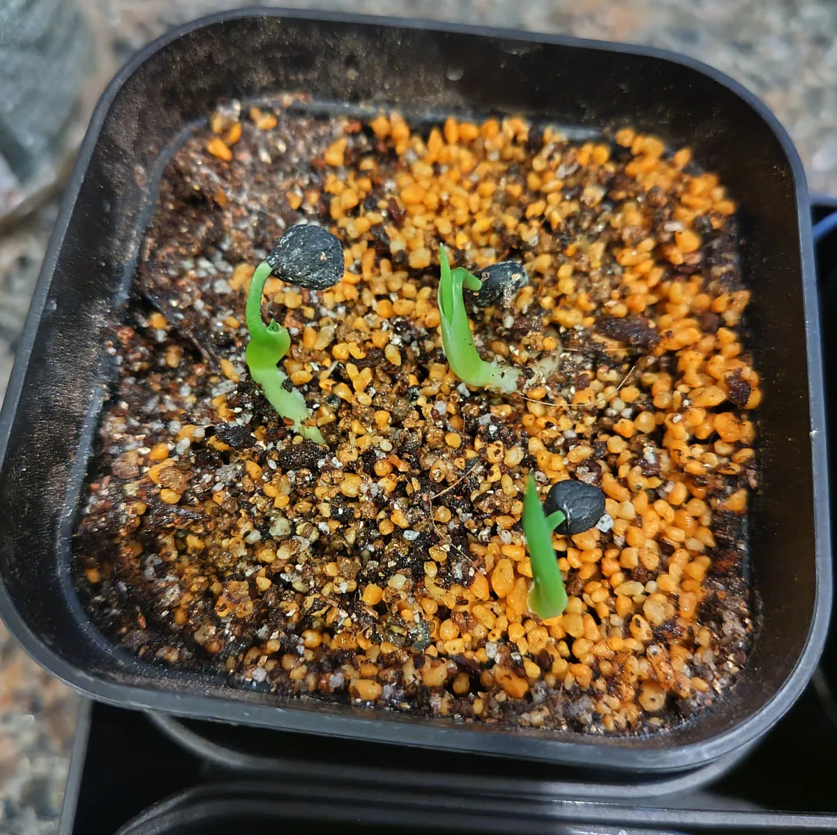 2024/9/24 おまけで頂いたものを播種。4つまいて1つは途中で変色し芽がでないため破棄。3つ発芽。
