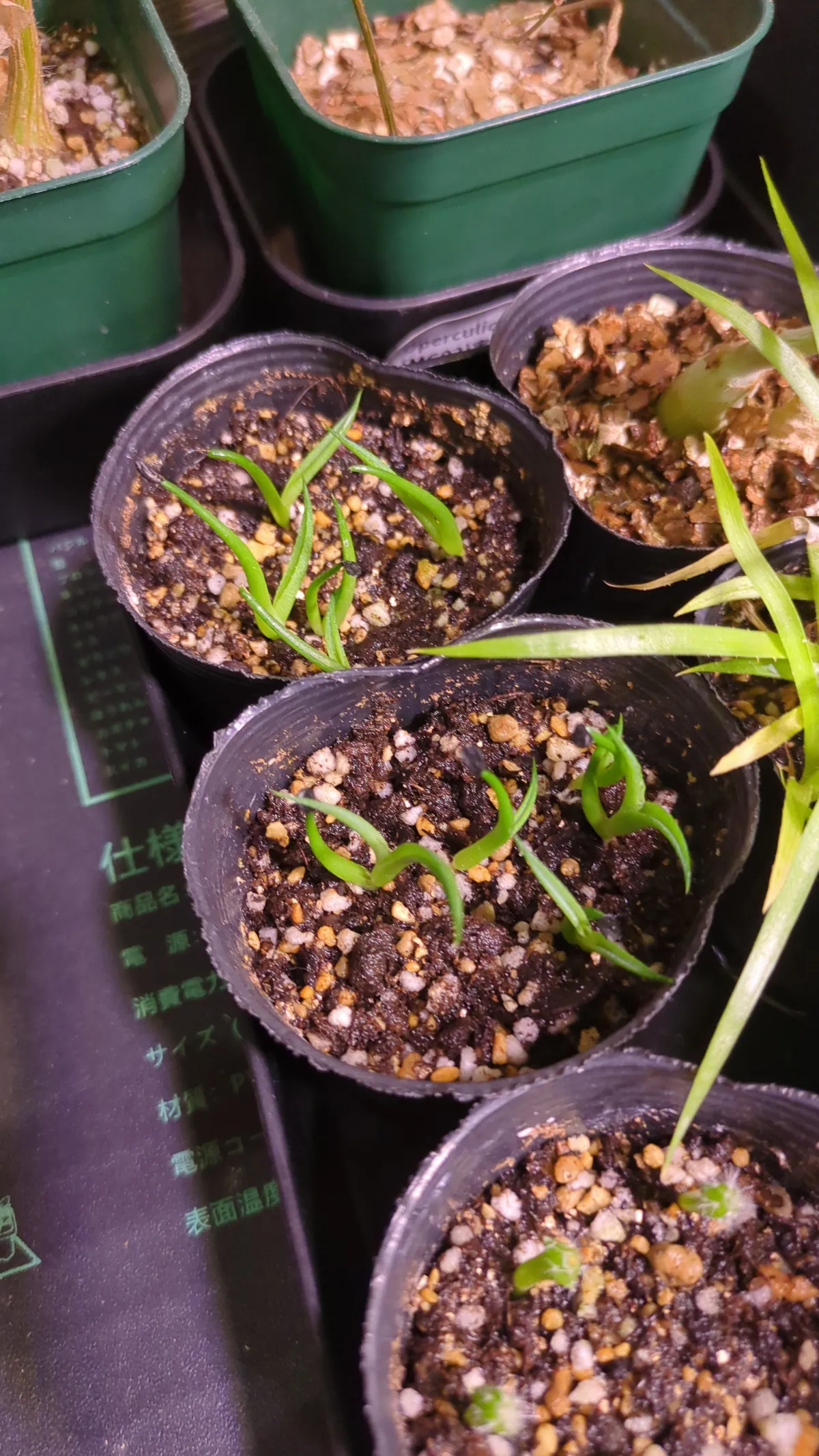 用土は下から軽石、赤玉土、市販の種まき用土の順