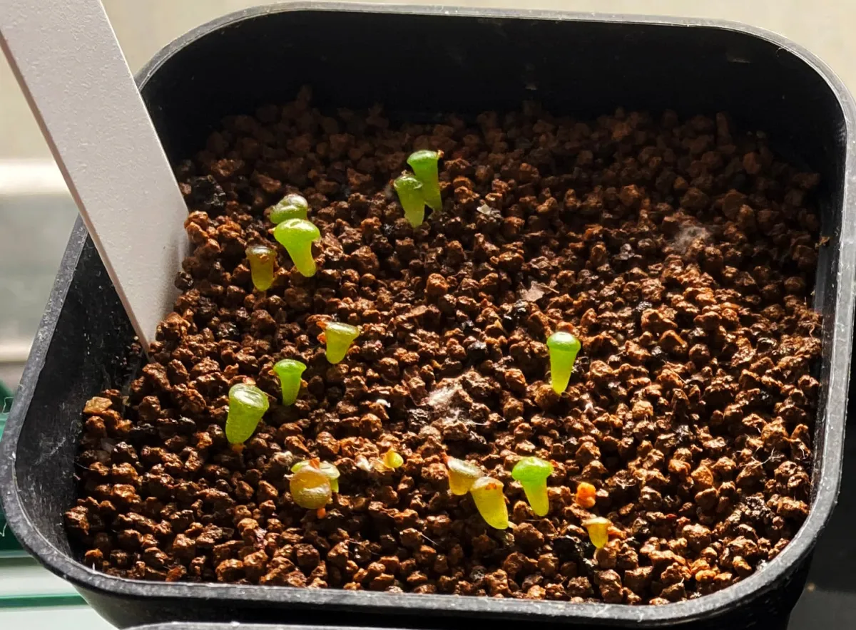 熱湯をかけて消毒.冷ましてから播種.