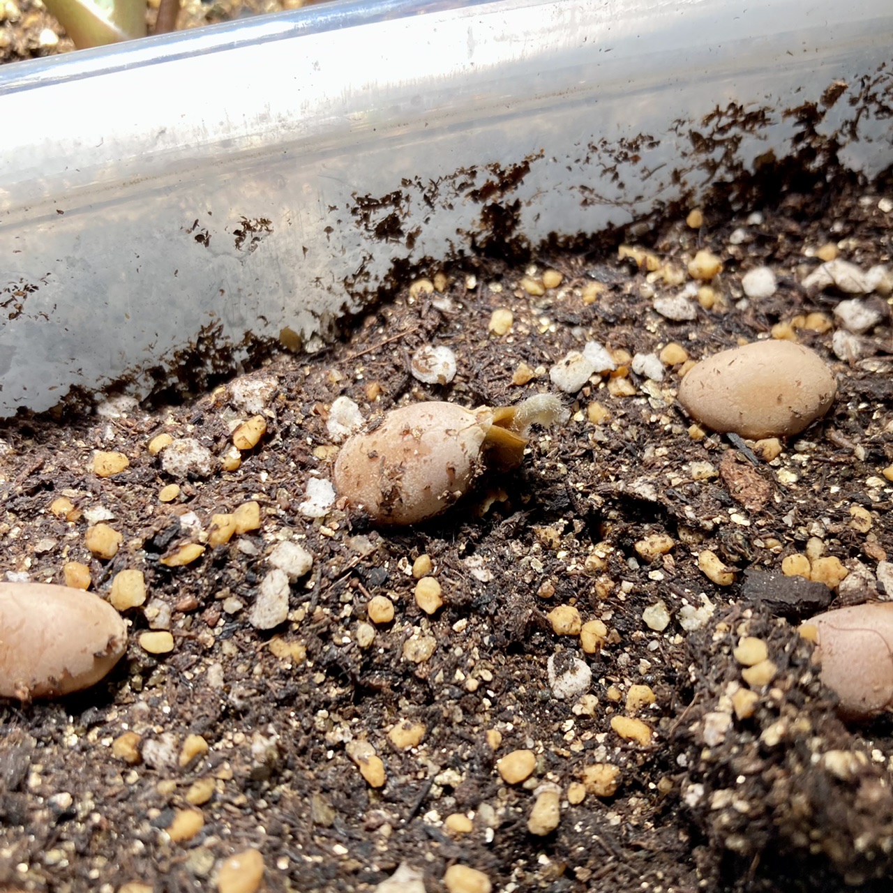 メネデールに24時間漬けて播種し、約20日で根が出ました。