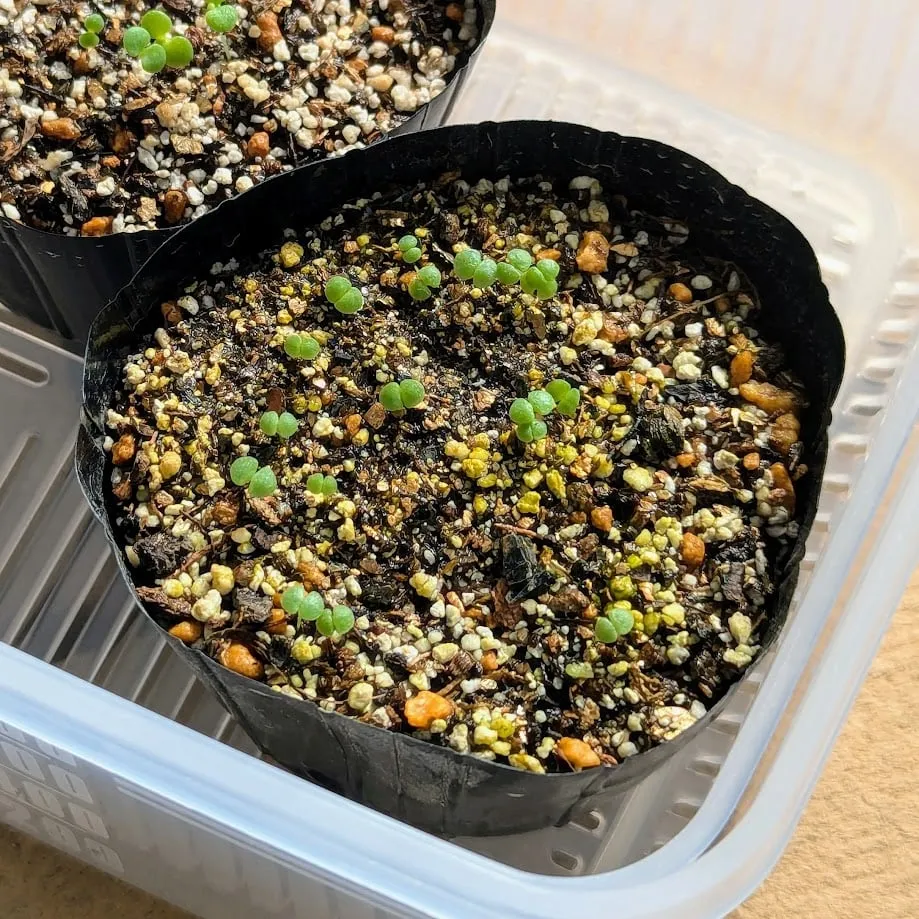 ・タッパーに入れて発芽までは腰水の状態で管理して、発芽後は鉢底が少し水に浸かる状態にしています。
