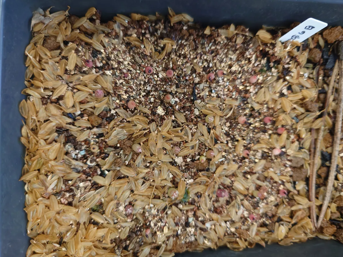 ・播種した種は、 バーミキュライトで薄く覆土し、籾殻を軽く撒いたり撒かなかったり。