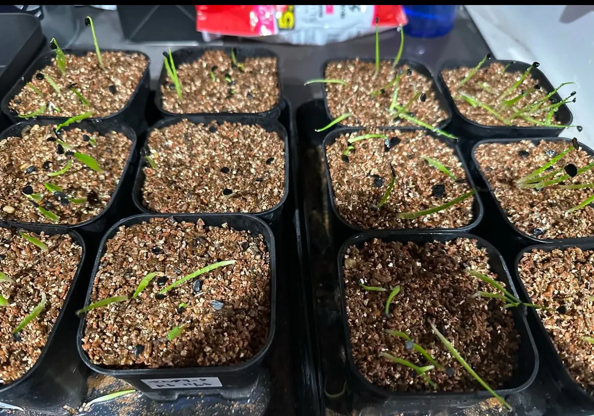 赤玉小粒、日向、軽石、パーライトなどを混ぜた用土にバーミキュライトを1.5cm程表面に乗せた上に播種