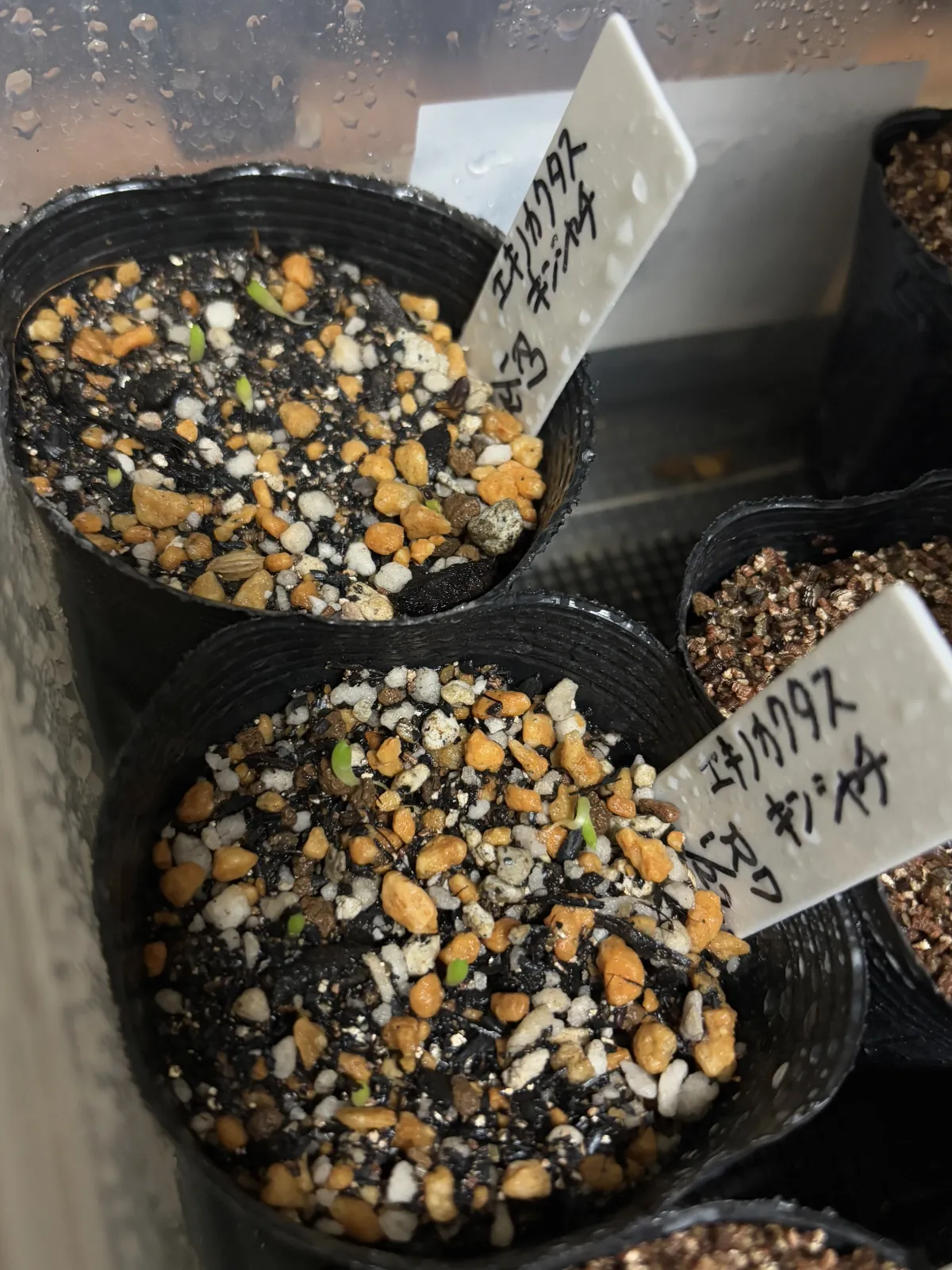 近所の植物店オリジナルの赤玉メインの用土を熱湯消毒後に播種、ヒーターマット40度設定、腰水で管理