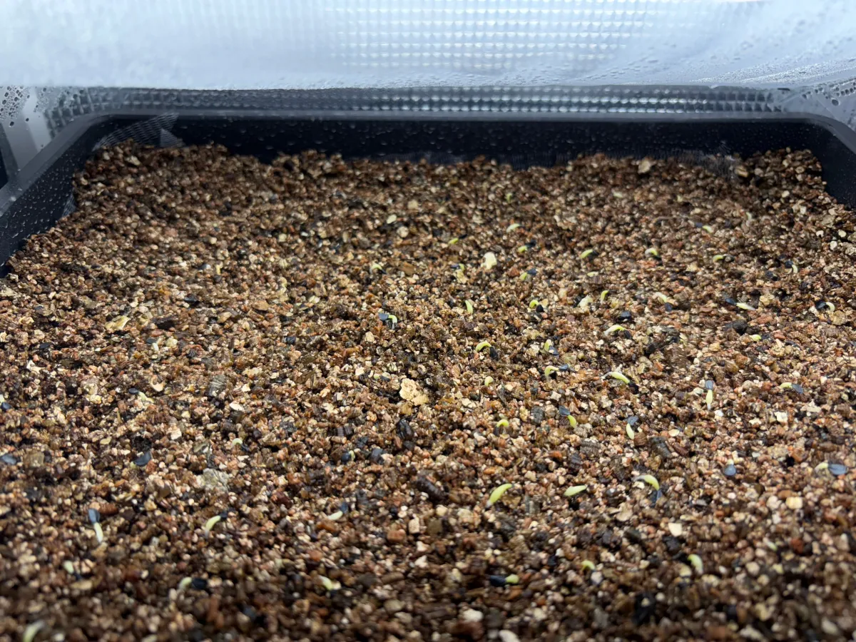 赤玉土と鹿沼土の用土にバーミキュライトを敷き播種、15度〜27度で管理