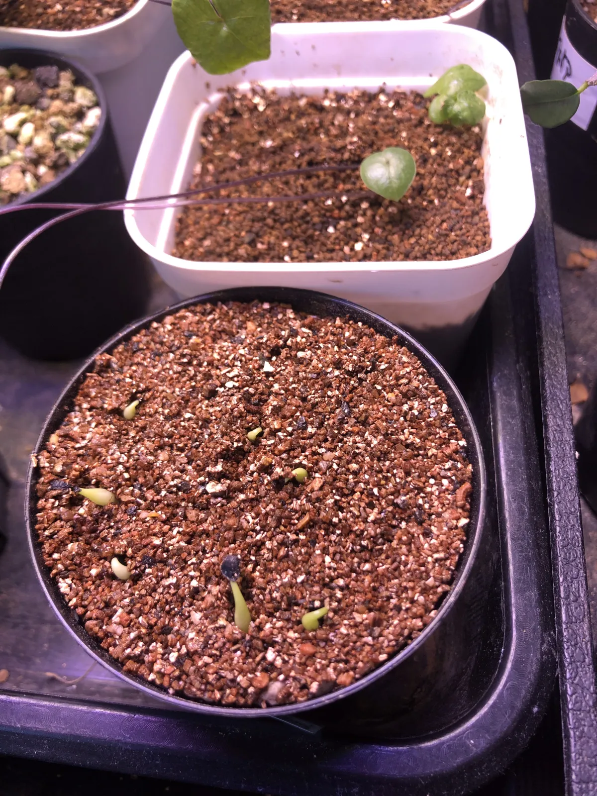 ベンレートとメネデールを入れた水で、赤玉細粒を入れた鉢を腰水して、種を置いてタッパーで保湿し室内保管。