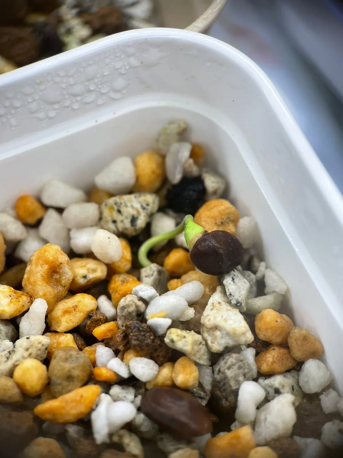 一つは翌日に発芽し、今もゆっくり成長しています、もう一つはその翌日に発芽しましたが成長するまえに力尽きました、オペルクリカリア難しい…