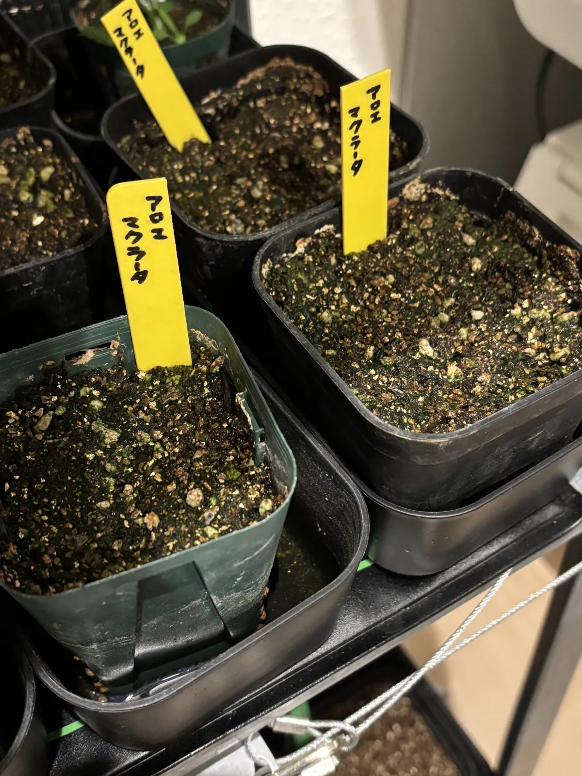 赤玉小粒メインの用土に上層を細目のバーミキュライトを敷き播種。