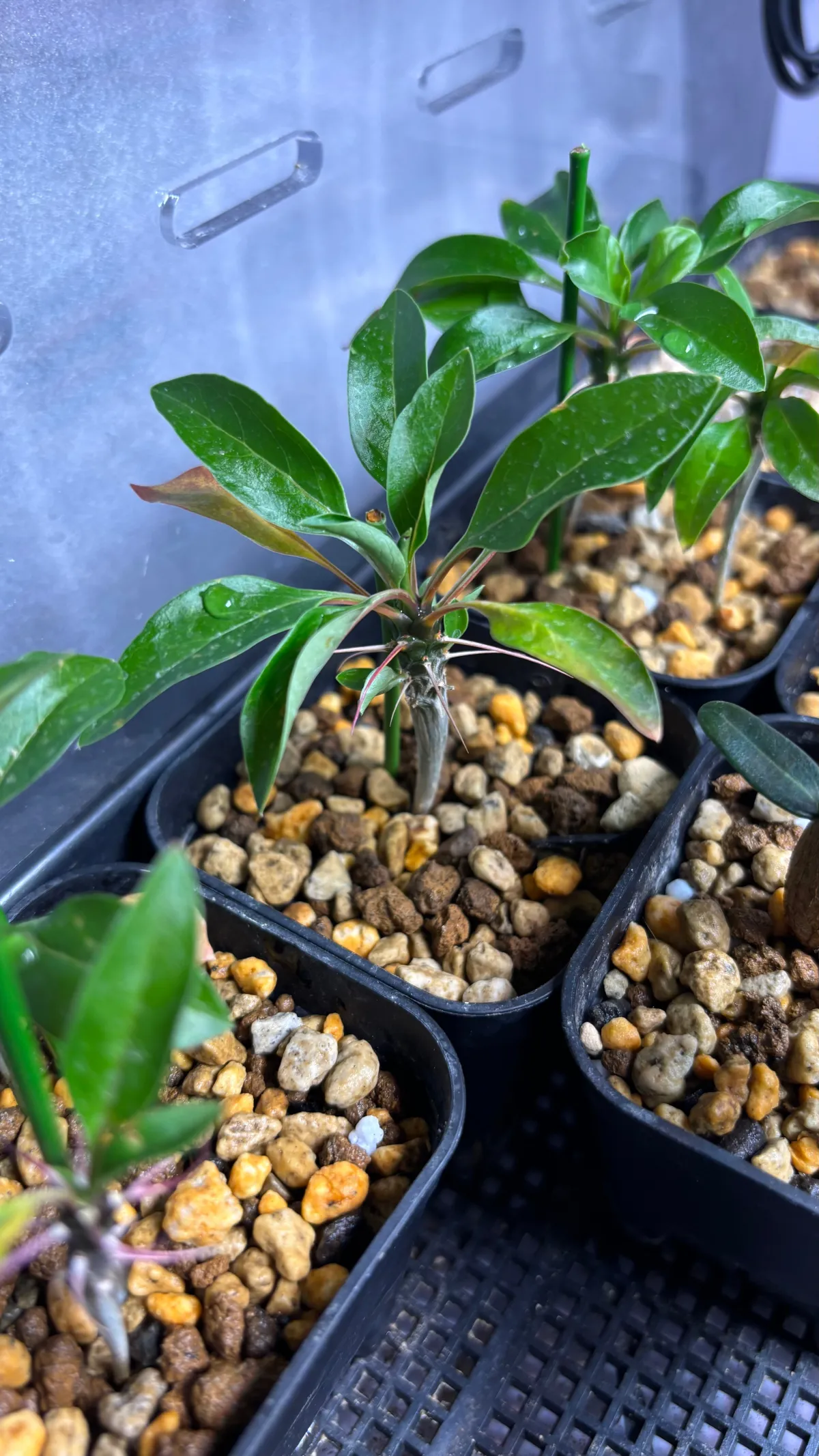 赤玉土、鹿沼、日向の混合土に種を蒔き、半透明の蓋をして腰水管理をしました。