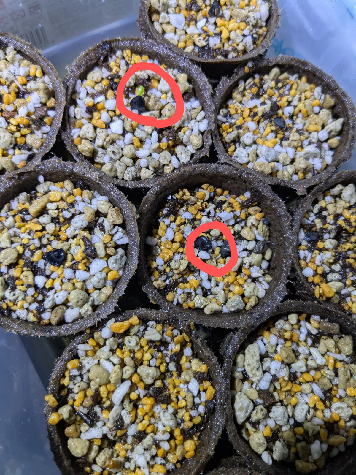 赤玉メインの用土に細目のバーミキュライトを敷き播種、20度〜25度で管理