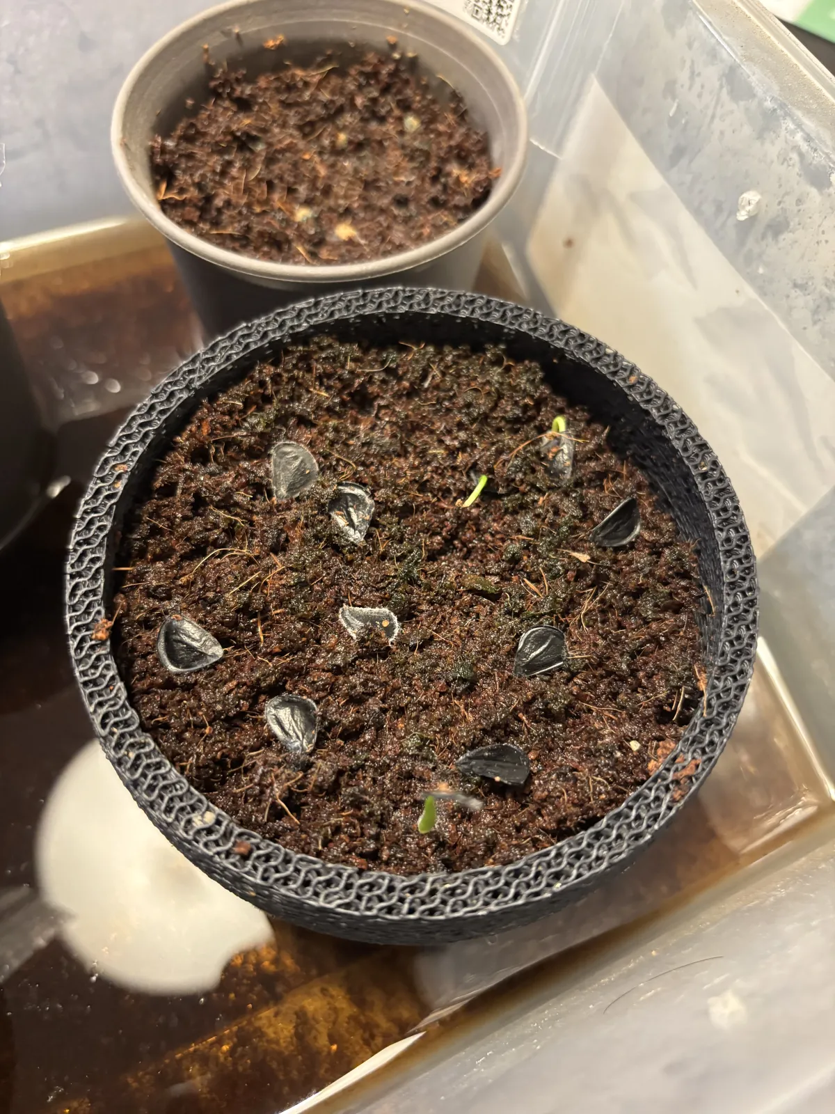 ほかのタネより遅めの発芽でした。このまま大きくなるかなー