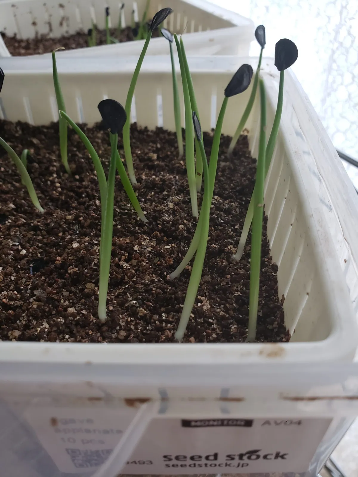 いただいたモニター種子12粒を7月11日に播種、3日程で発芽確認、12/12粒が発芽(発芽率100%)。用土:赤玉土(細粒)とバーミキュライトを混ぜ熱湯消毒したもの。容器:100均の温野菜レンジ調理器。種子消毒:ベンレート2000倍に6時間浸けた。管理:ベンレートで霧吹きと腰水をし、室内の窓際に置く。