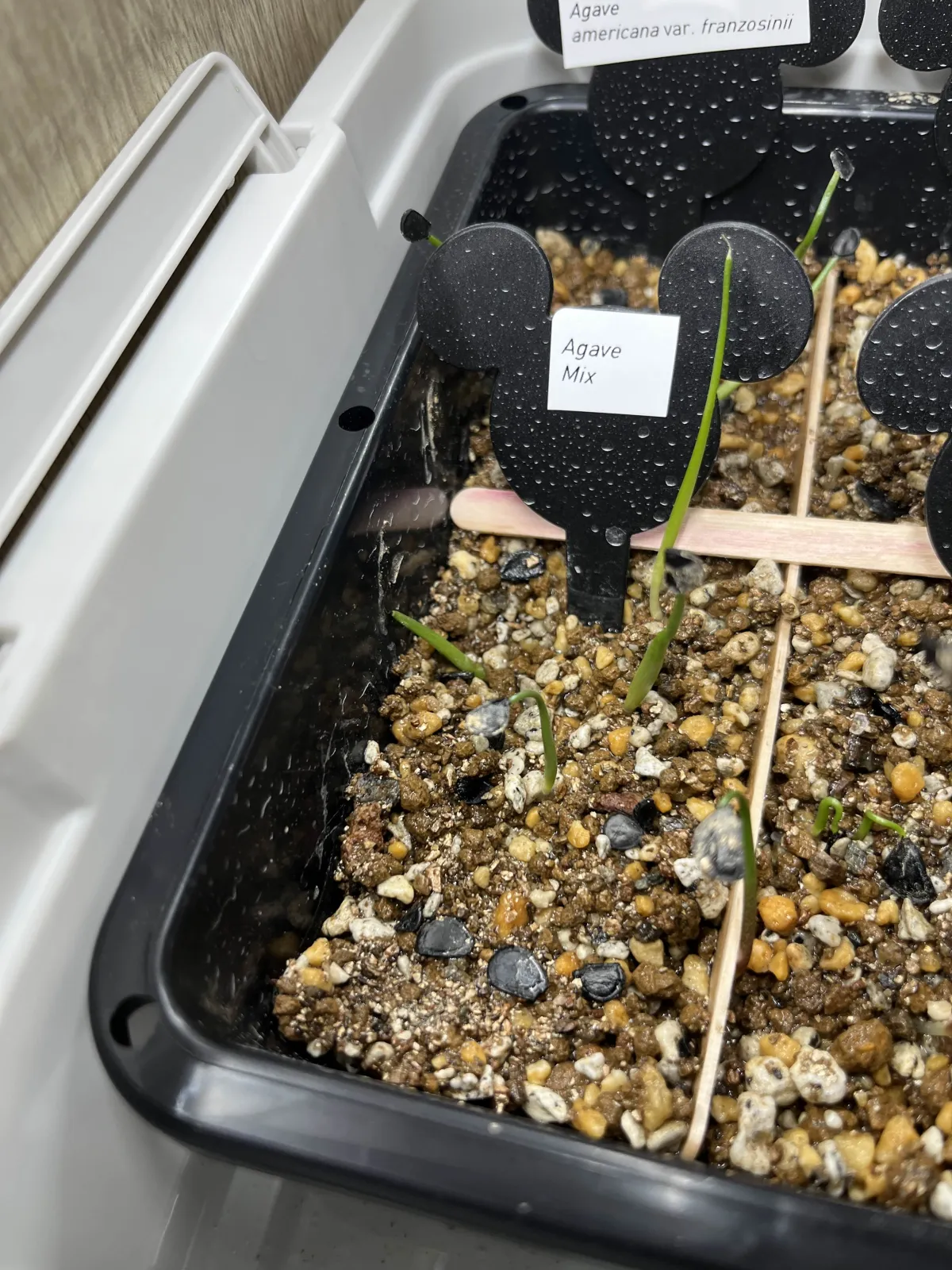 種子と比べると少しだけ土の粒の方が大きいが問題なく発芽した。