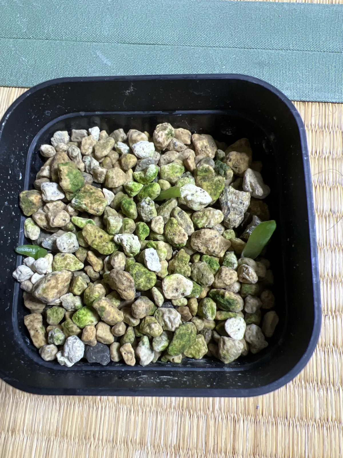 赤玉、日向、軽石、鹿沼の配合の用土でそのままま播種しました。発芽率はいまいちでした