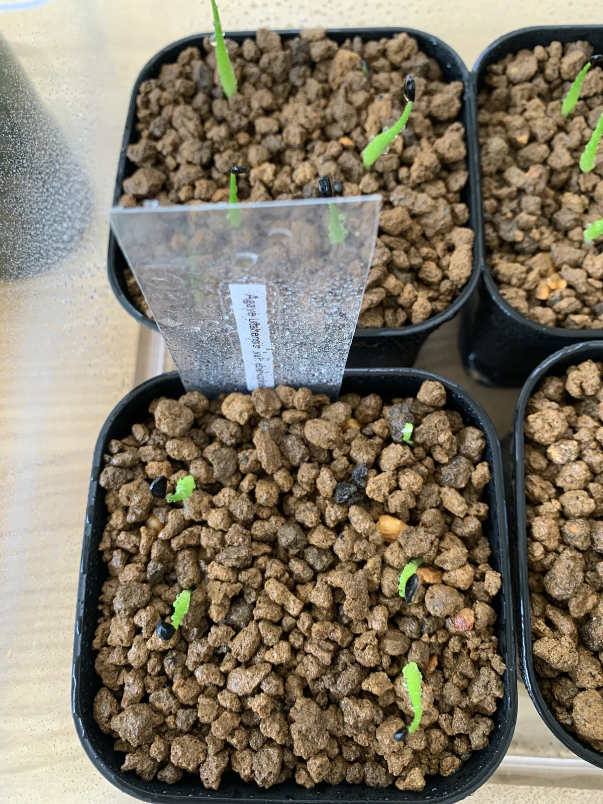 鹿沼4.5、赤玉5、木炭0.5メインの用土に播種、20度〜25度で管理