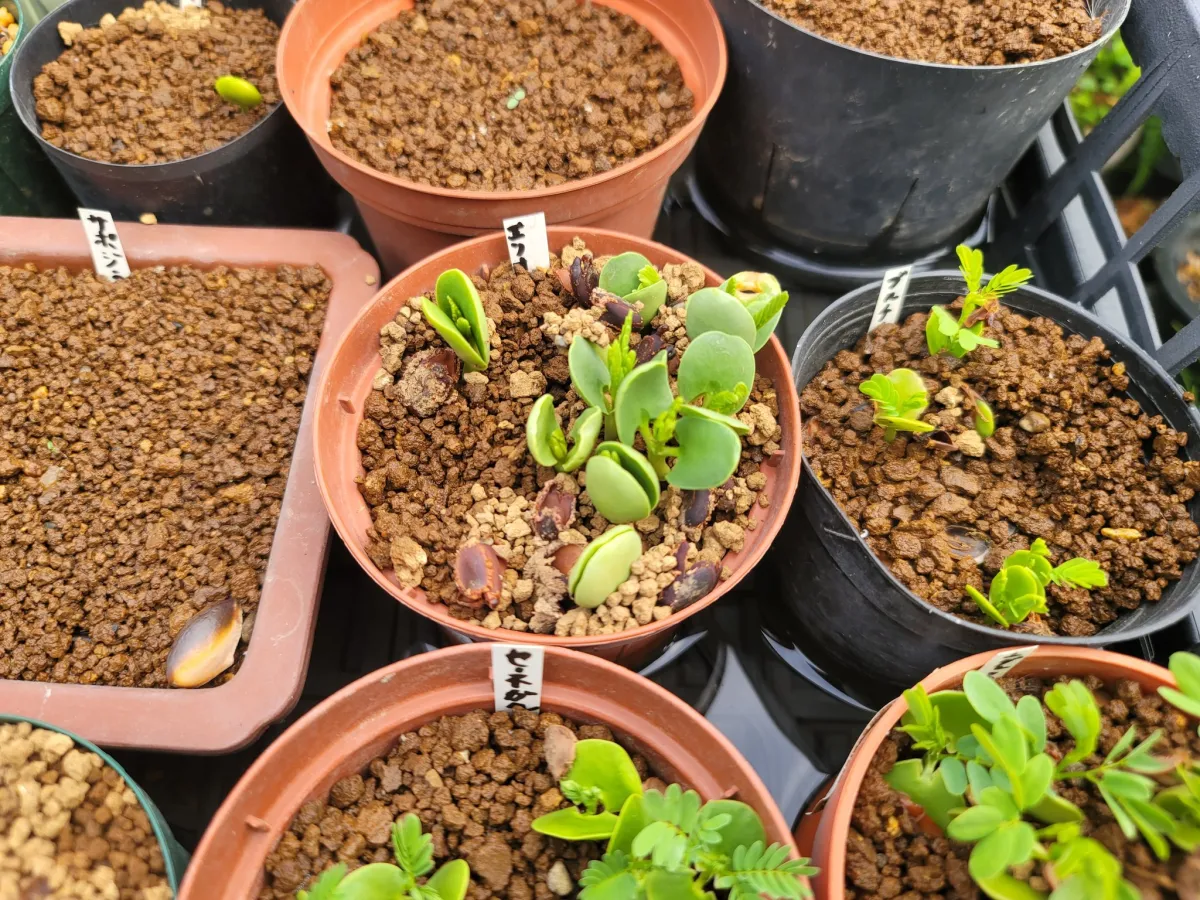 管理:育苗トレーにて腰水(エックスエナジー溶液)、野外の日向に置く