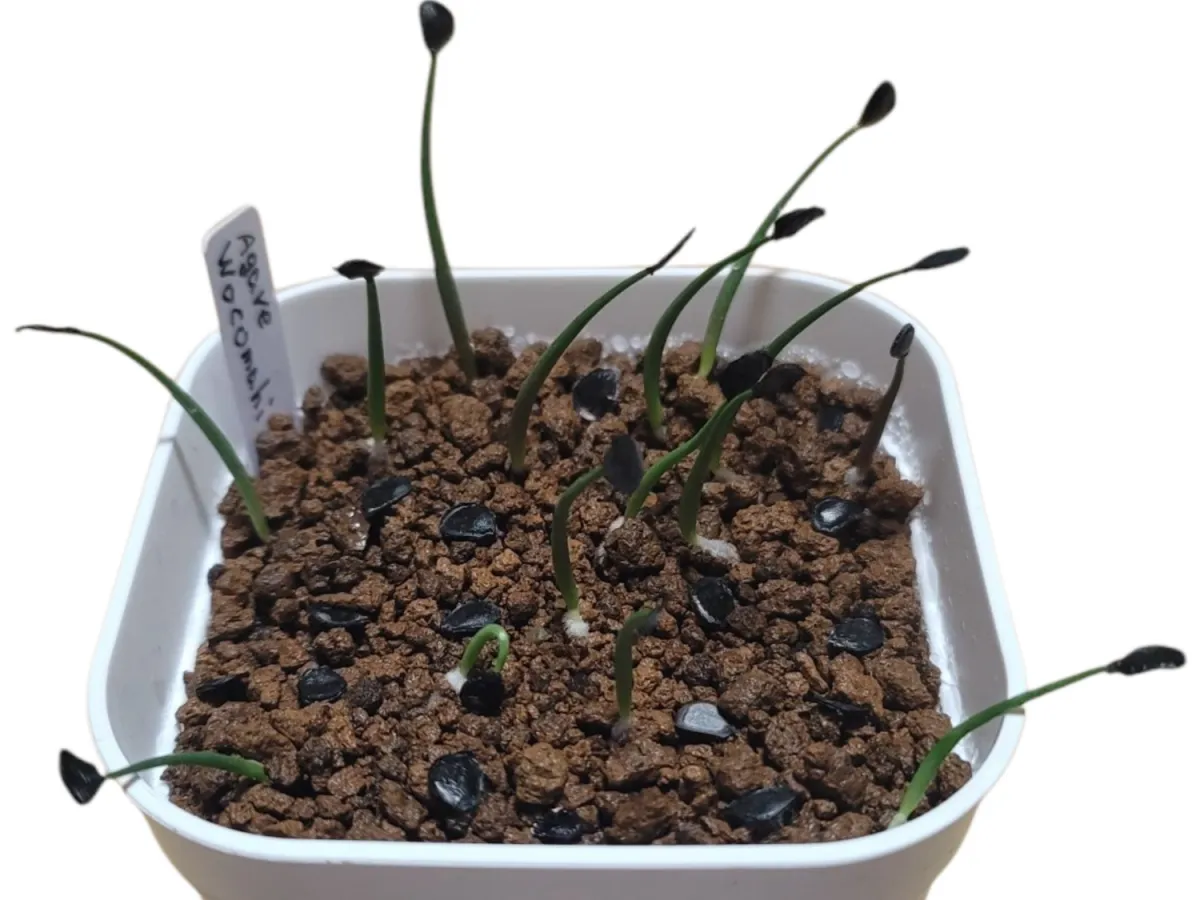 プレステラ105に赤玉を敷き播種、ベンレートをスプレー後ラップして木酢液の稀釈水で腰水管理 20度〜30度で管理