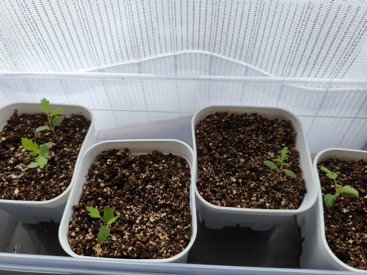 赤玉小粒、バーミキュライト、ゼオライトを6:2:2(表土を3mmほどバーミキュライト)、熱湯かけてから播種、腰水20度〜25度で管理