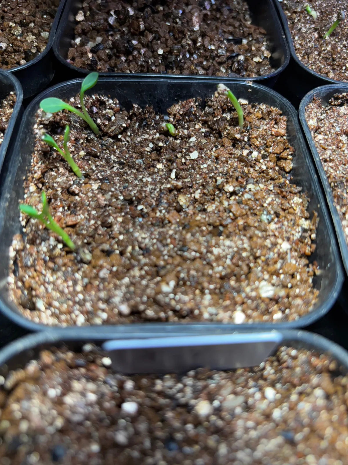 赤玉メインの用土に細目のバーミキュライトを敷き播種、20度〜25度で管理