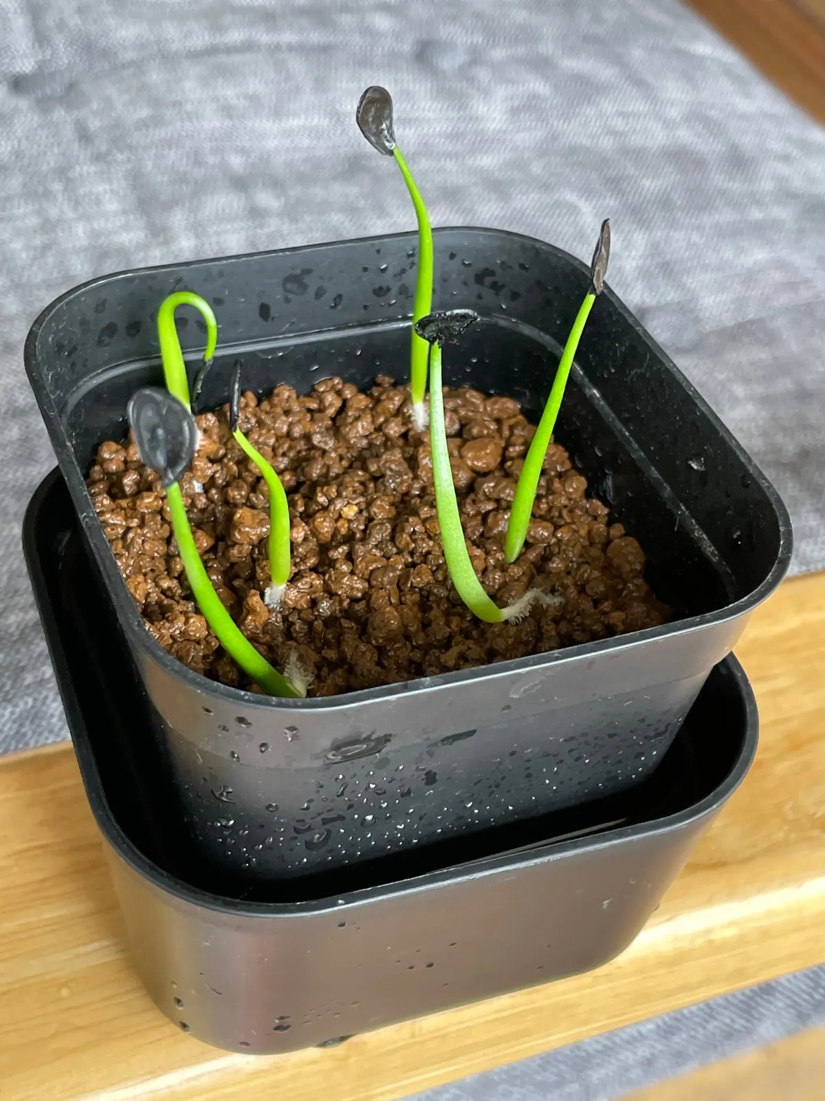 播種から3日で2つがわずかに発芽。5日程度でほかもほぼ発芽。