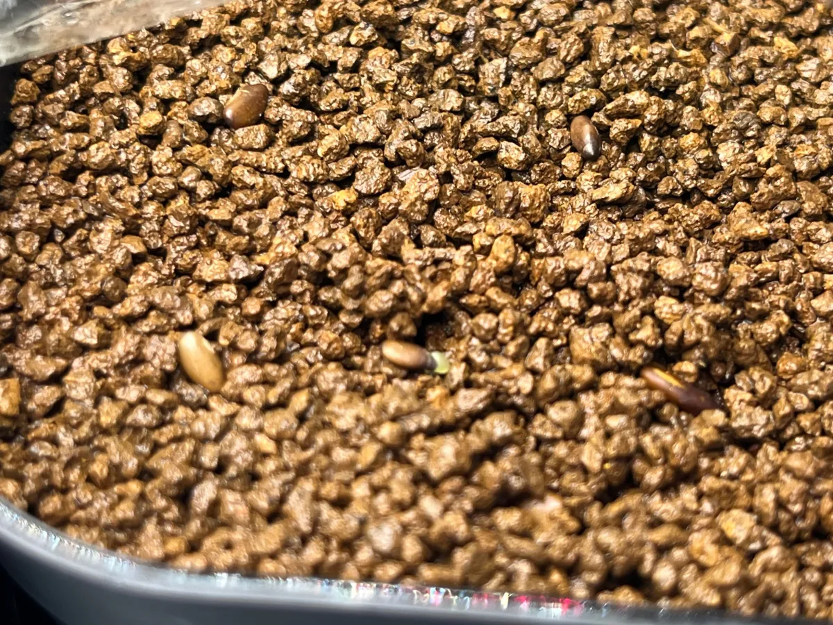 播種前にベンレート+メネデール溶液に半日程度浸漬した後、キッチンペーパーを湿らせた上に播種し、密閉加温管理しました。