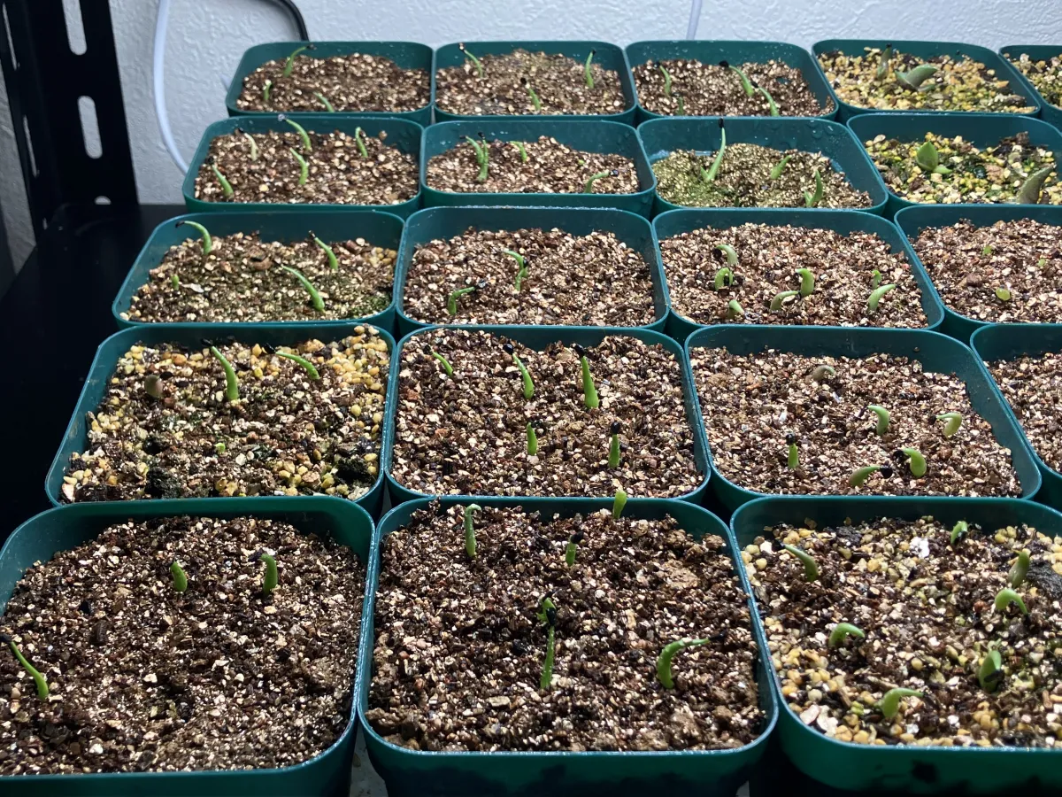 腰水管理で室内の育成ライトの下で管理しています。