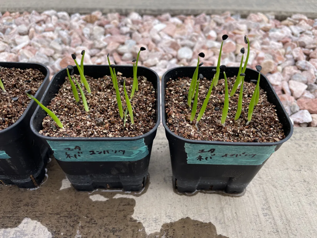 赤玉メインの用土に細目のバーミキュライトを敷き播種、20度〜25度で管理