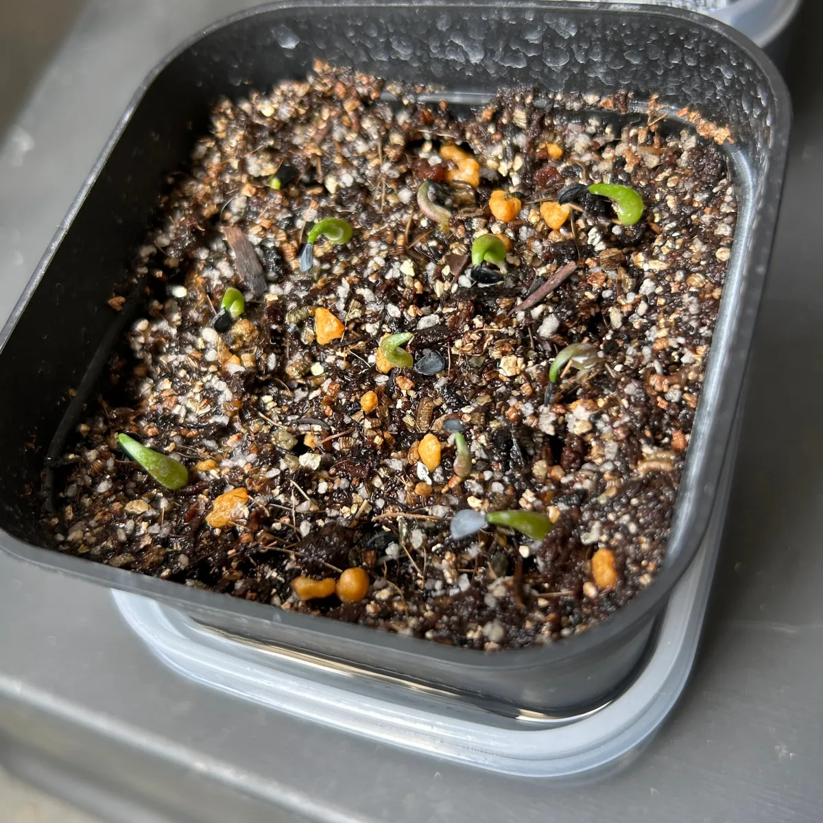 表面:さし芽種まきの土(バーミキュライト+パーライト+ピートモス+ココナッツファイバー)