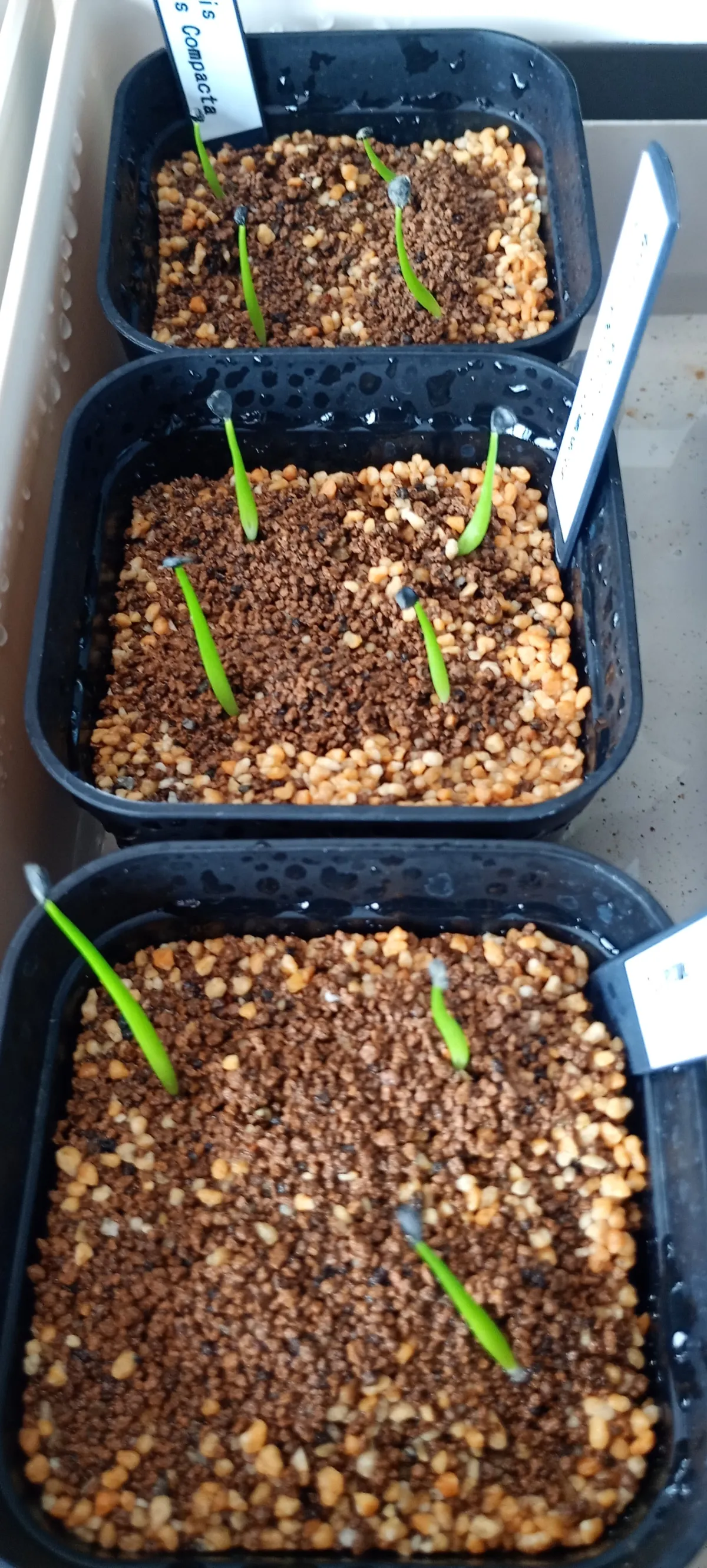赤玉土鹿沼土の細粒に播種後、薄めに覆土