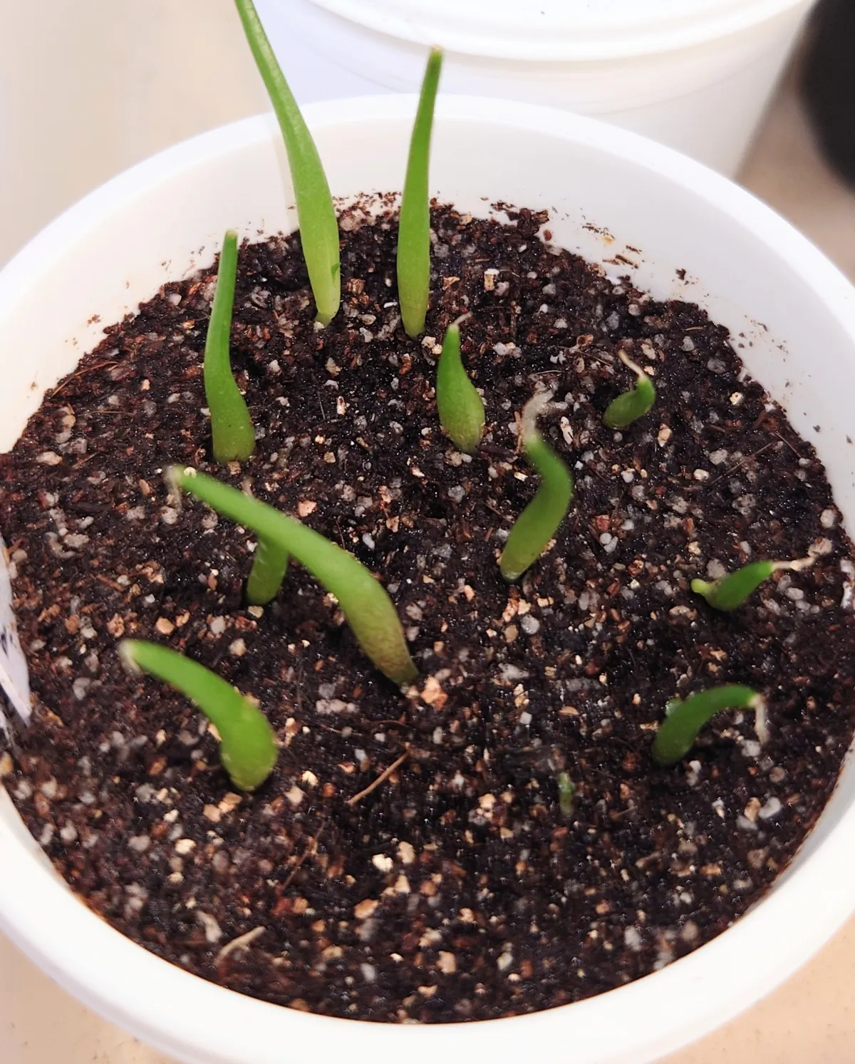 内1粒が発芽途中で止まって枯れそうだけれど他11粒はとても元気です