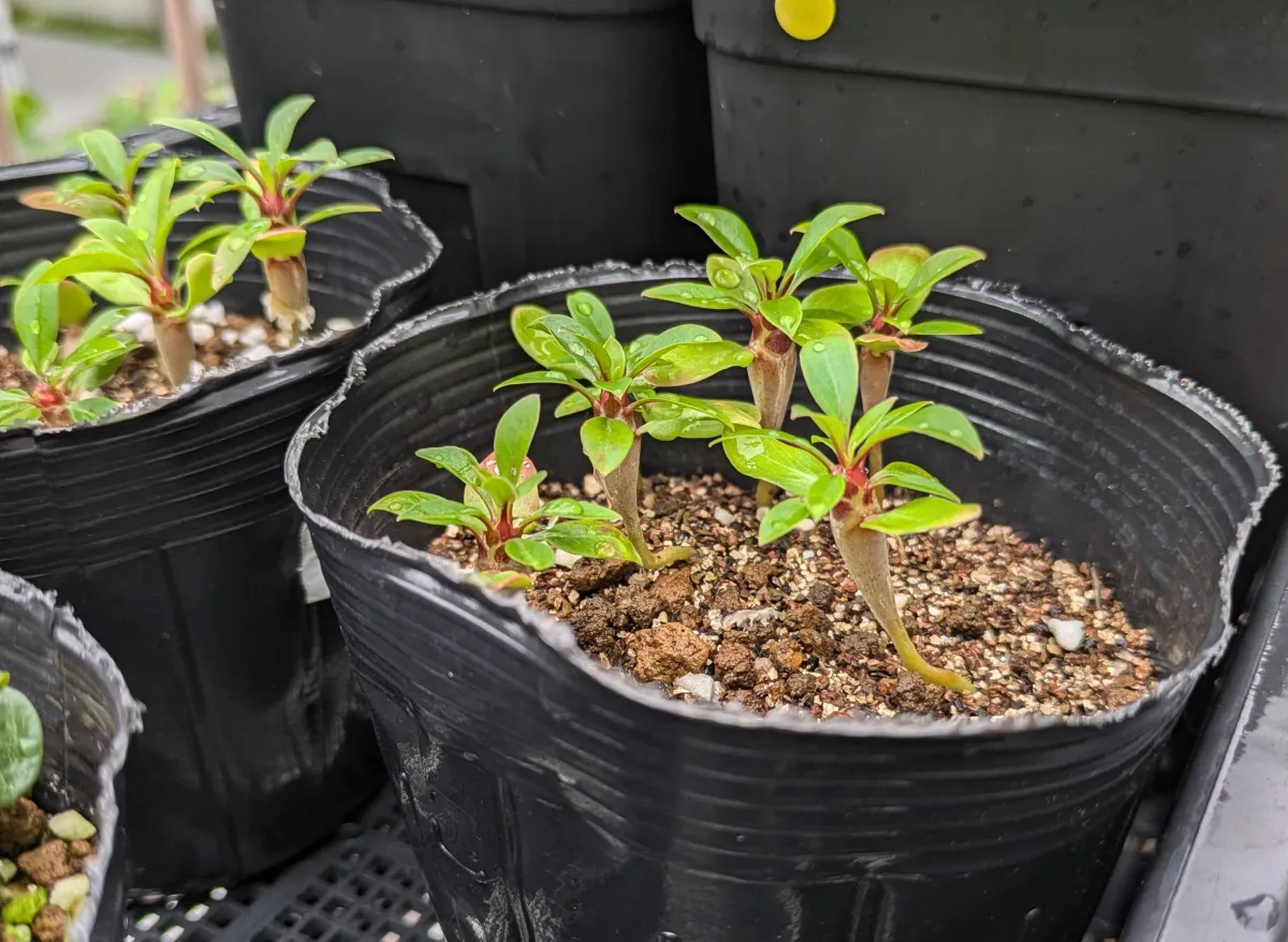 多くの種子に動きがあったものの本葉が展開する前に枯れました。現在農薬や固形肥を与えた上で雨ざらしの野外で育成しています。
