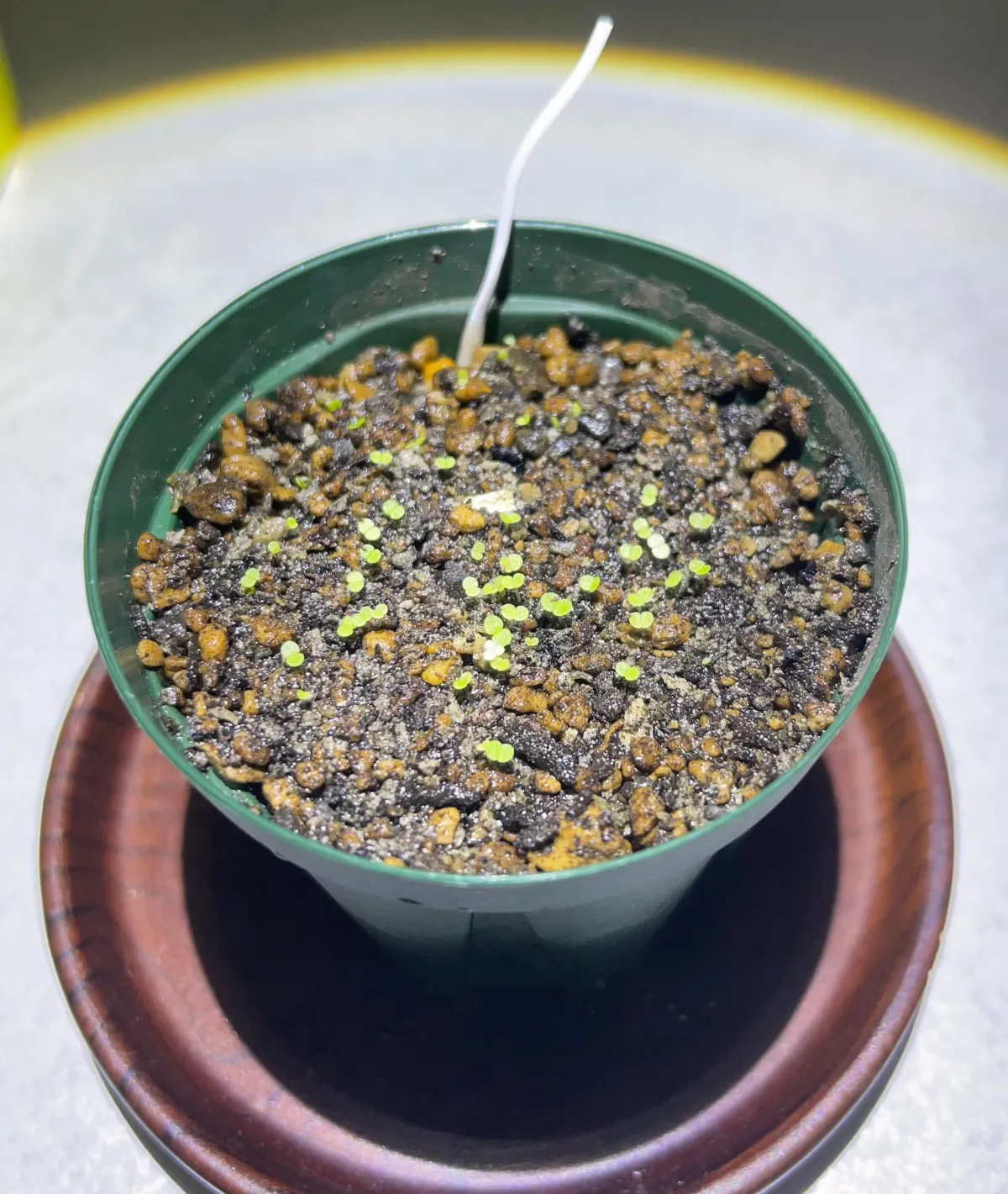 ・播種前に鉢の底にサイズを合わせたネットを置きその上に土を入れる