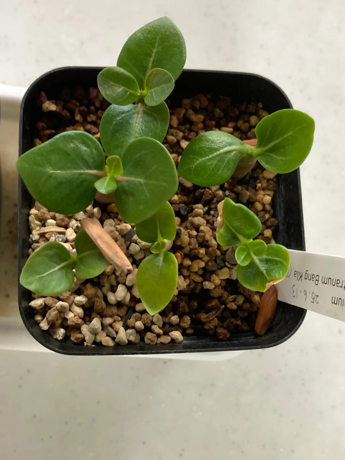 いつも使うコーデックス用土の上に赤玉メインの用土を敷き播種、室内20度〜25度で管理