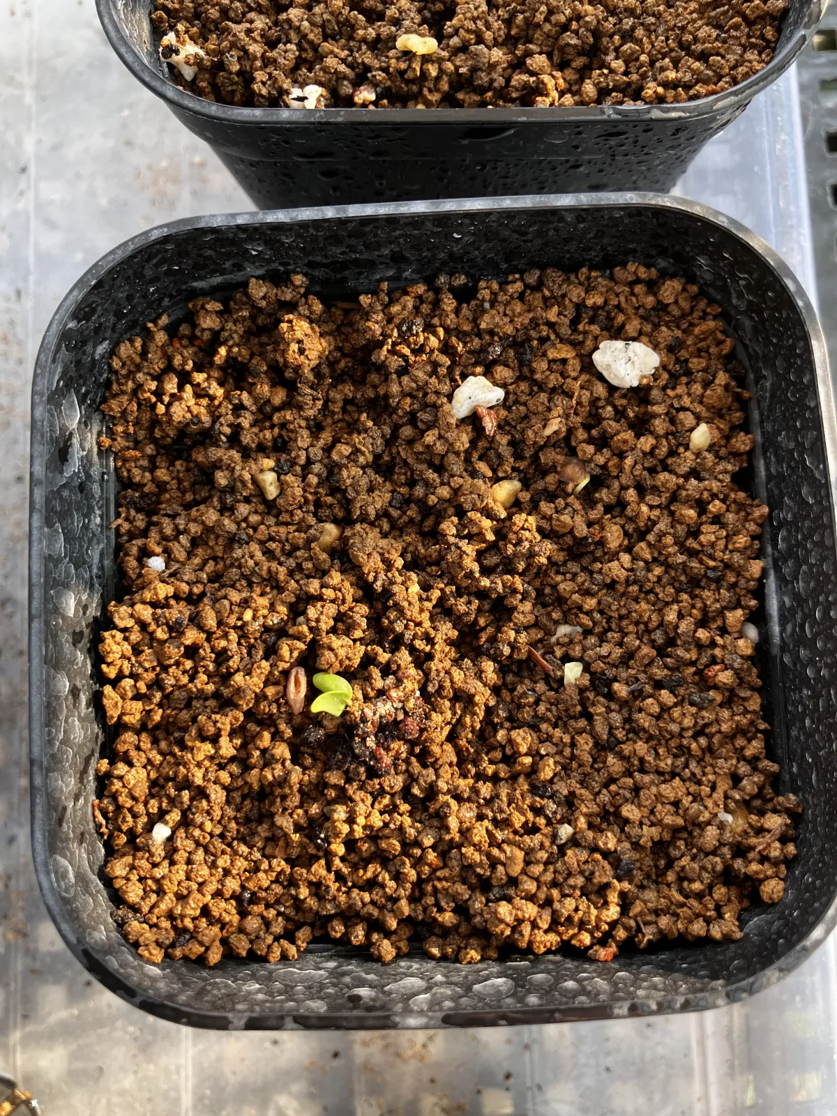 赤玉メインに種まき土を混ぜ、上1cm程度赤玉細粒