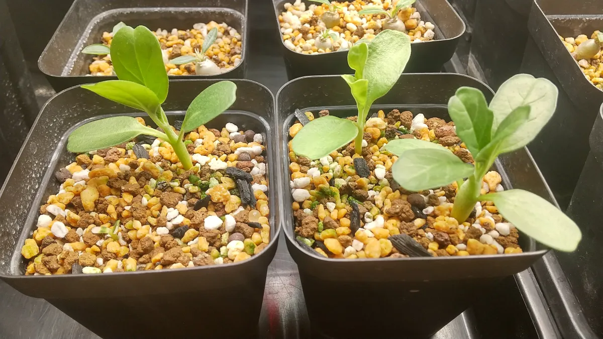 ・白い擦れたような種子が播種から5日で発芽