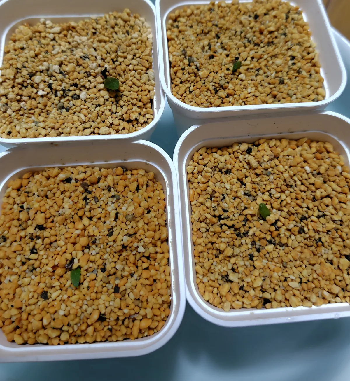 ベンレート&メネデール溶液に24時間程浸漬後、軽石・赤玉・鹿沼土に播種。同じ溶液で腰水して発芽後は腰水やめて霧吹きのみ。ゆっくり生長していて可愛いです。