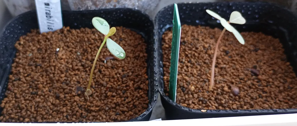 赤玉細粒に播種、薄く覆土