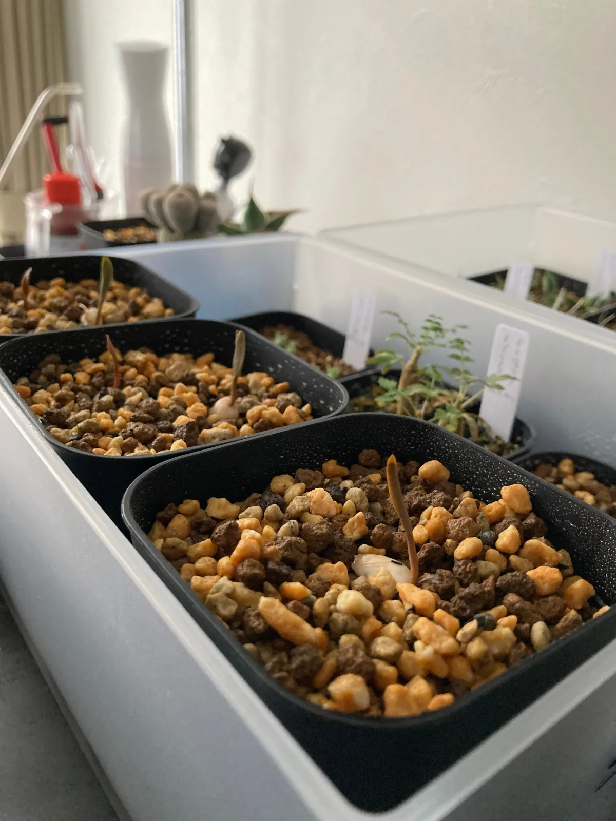 ・管理状況は28〜32℃程度の室温、育成ライト15000lx、腰水にて管理しています。