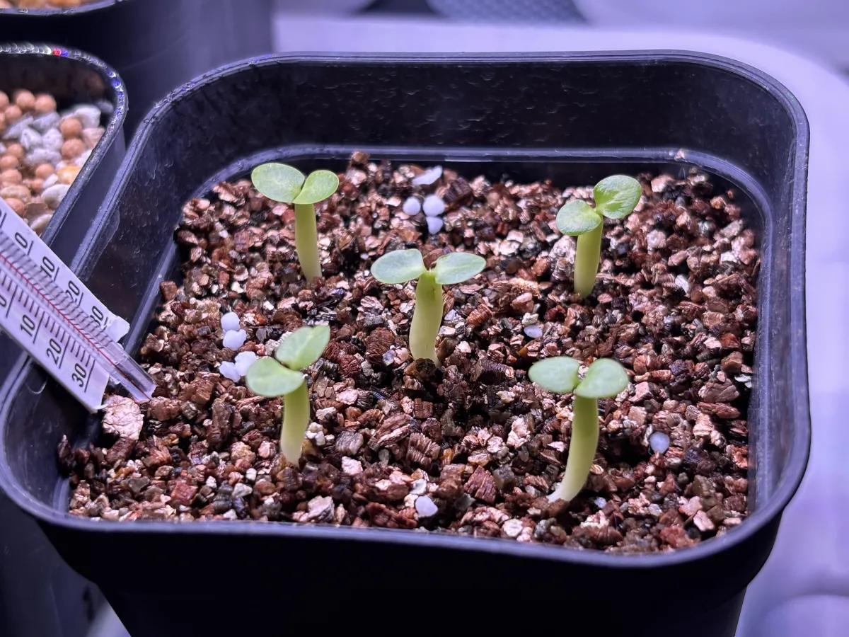 他の種子を蒔くために作った温水溶液(メネデール+ダコニール+ジベレリン+HB101)に1時間程浸漬したところ、種子がパンパンに膨れて、一部ダメにしてしまった。かなり簡単に発芽するようで、ヒーターを使ったが正直必要無さそうだった。