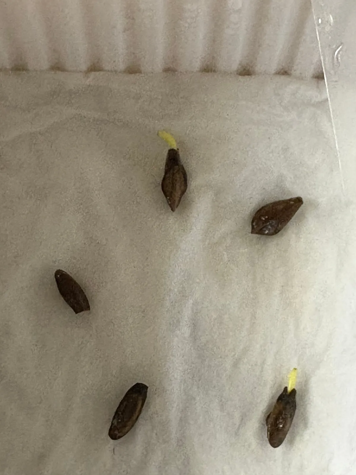 湿らせたテッシュの上に播種、ヒーターマットにて20度〜25度で管理