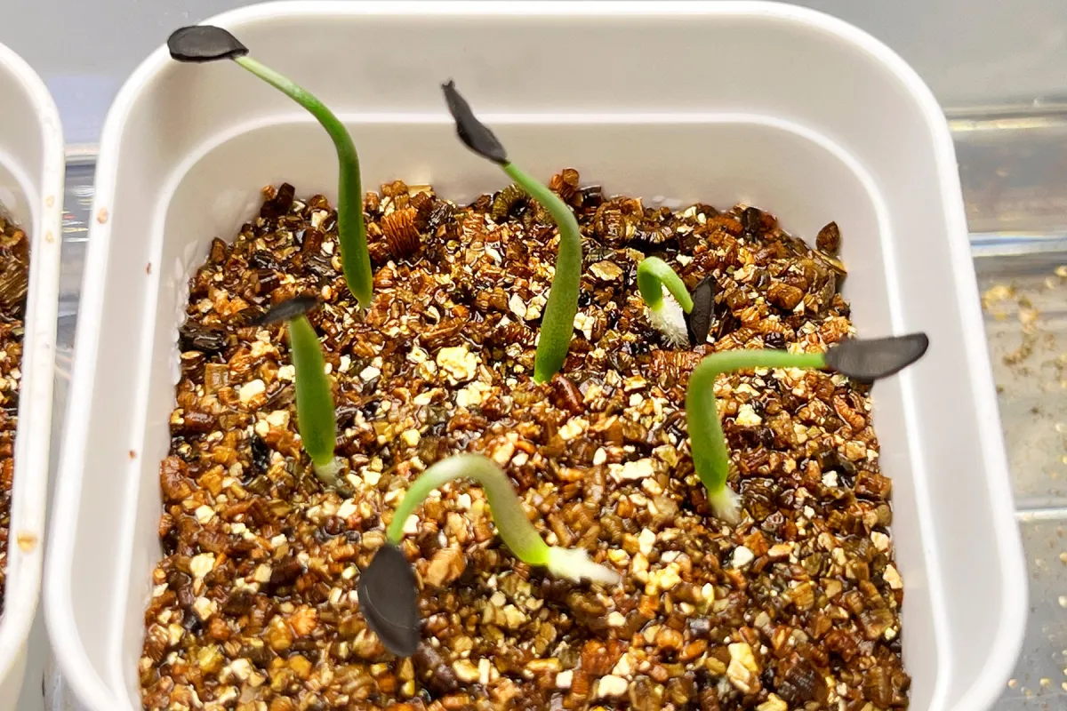 赤玉メインの用土上部に10mm程バーミキュライトを敷き播種
