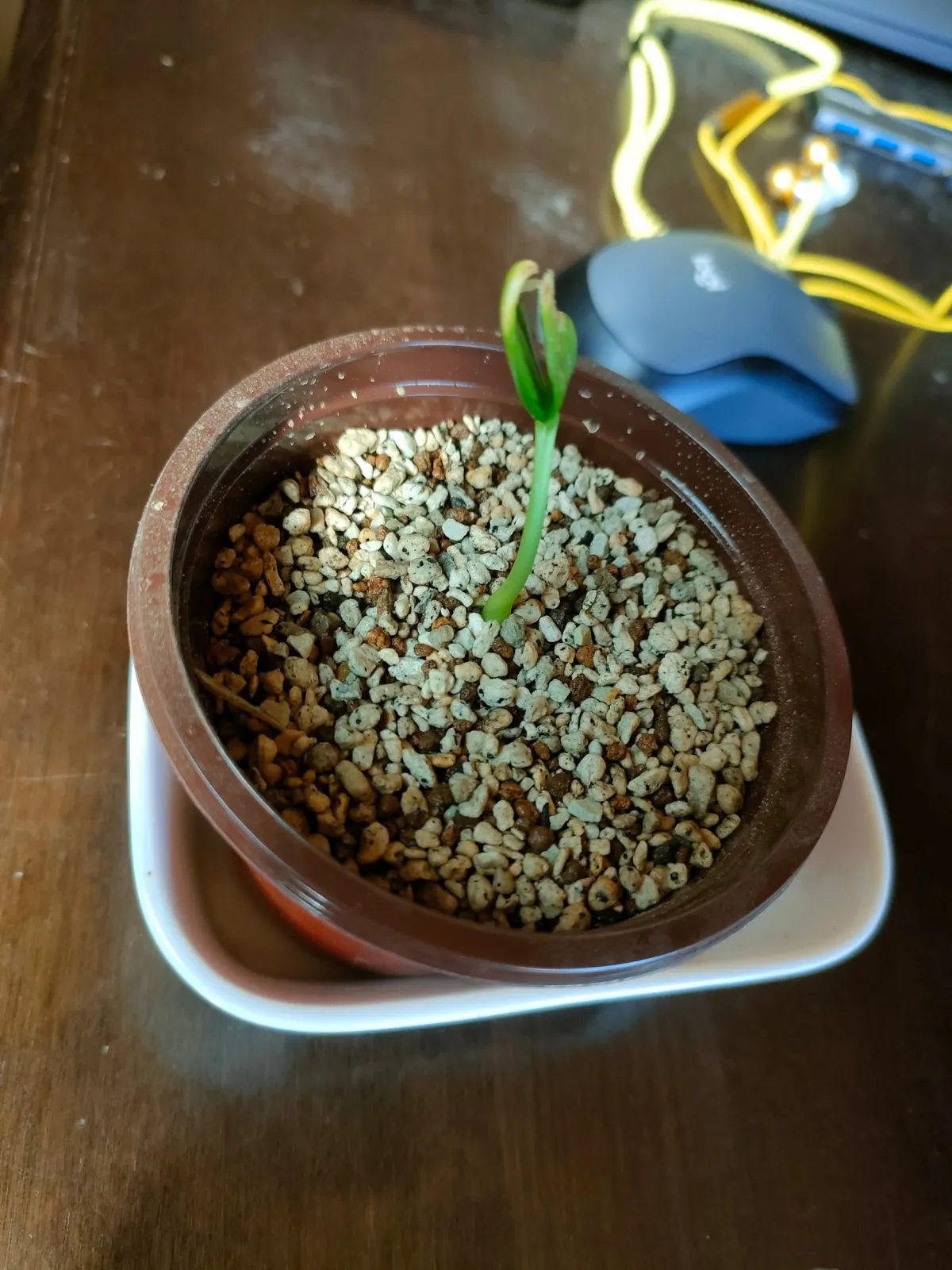 出窓に出しっぱなしだった連結ポット2の片方の発根を確認。